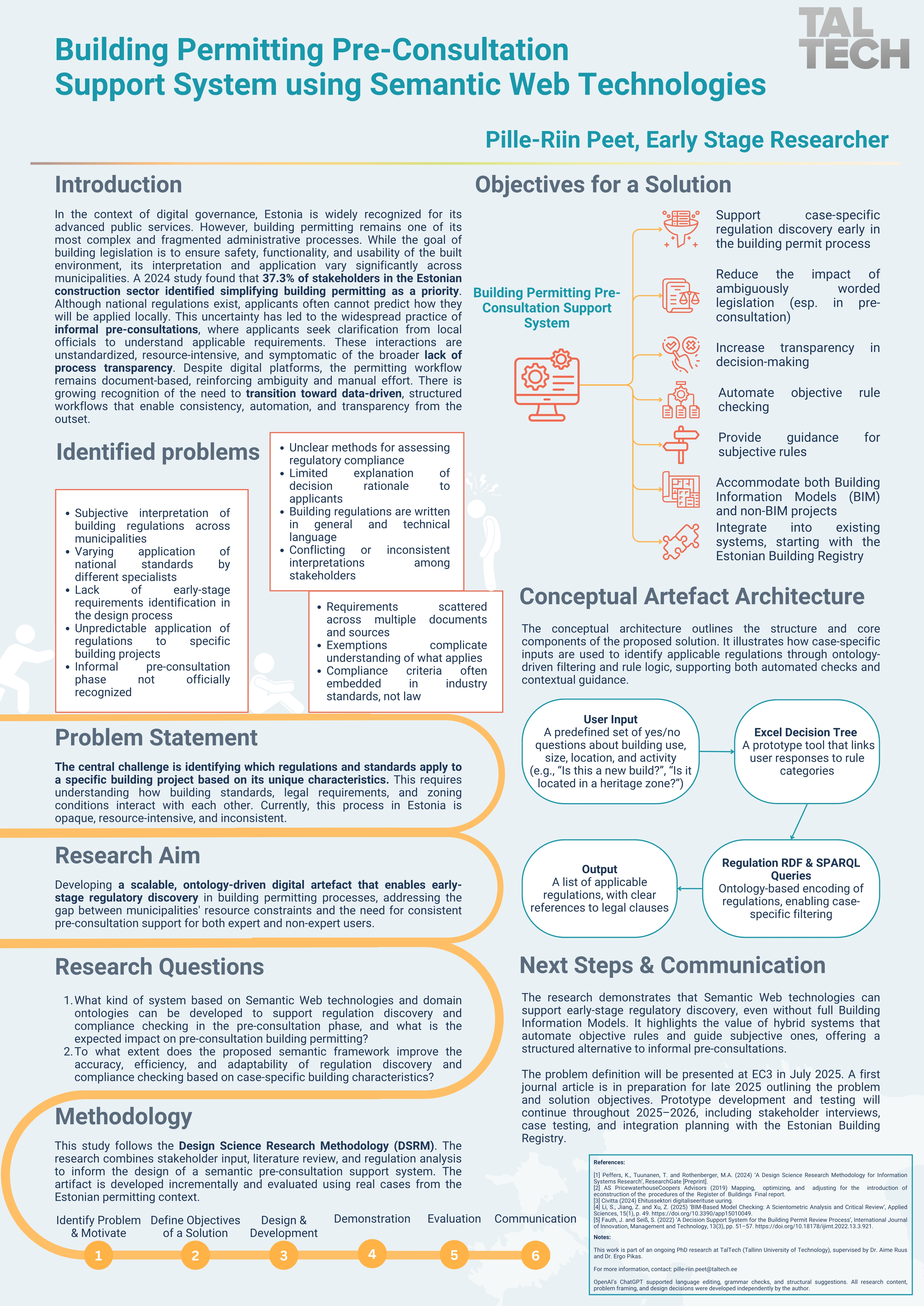 In the context of digital governance, Estonia is widely recognized for its advanced public services. However, building permitting remains one of its most complex and fragmented administrative processes. While the goal of building legislation is to ensure safety, functionality, and usability of the built environment, its interpretation and application vary significantly across municipalities. A 2024 study found that 37.3% of stakeholders in the Estonian construction sector identified simplifying building permitting as a priority. Although national regulations exist, applicants often cannot predict how they will be applied locally. This uncertainty has led to the widespread practice of informal pre-consultations, where applicants seek clarification from local officials to understand applicable requirements. These interactions are unstandardized, resource-intensive, and symptomatic of the broader lack of process transparency. Despite digital platforms, the permitting workflow remains document-based, reinforcing ambiguity and manual effort. There is growing recognition of the need to transition toward data-driven, structured workflows that enable consistency, automation, and transparency from the outset.